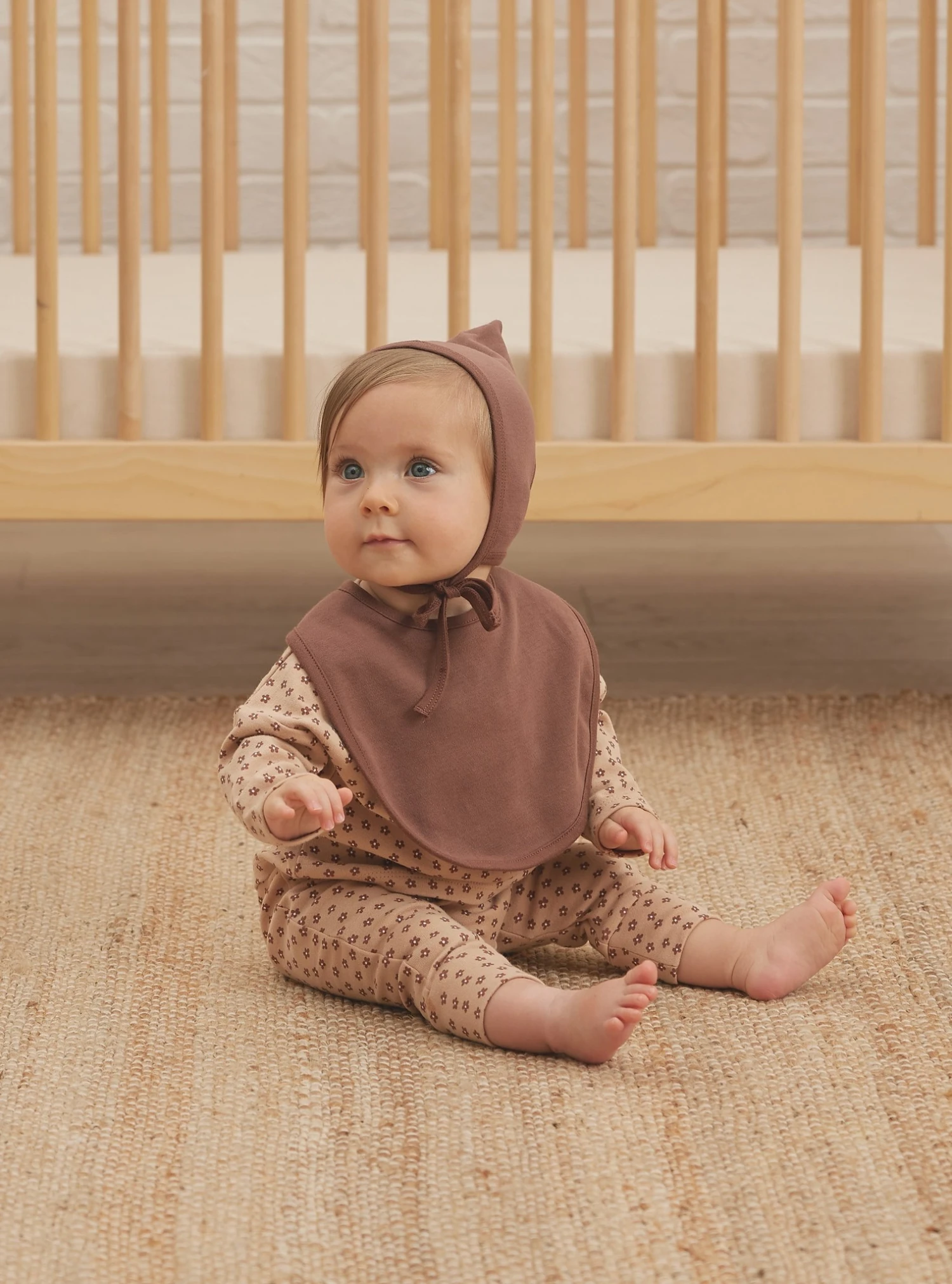 Bonnet en coton biologique brossé avec cordons au cou.