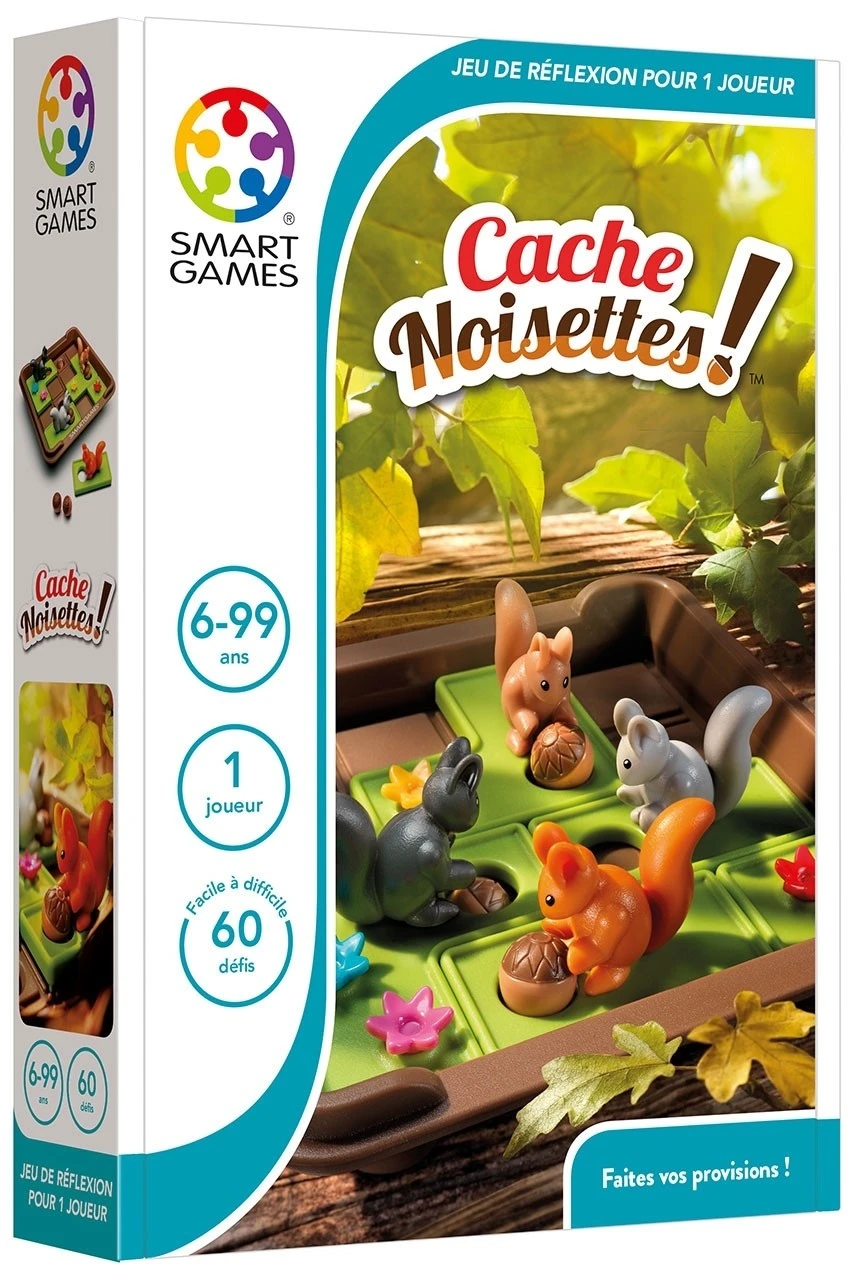 «Cache-noisettes» est un jeu de logique proposant 60 défis à résoudre, de facile à expert.